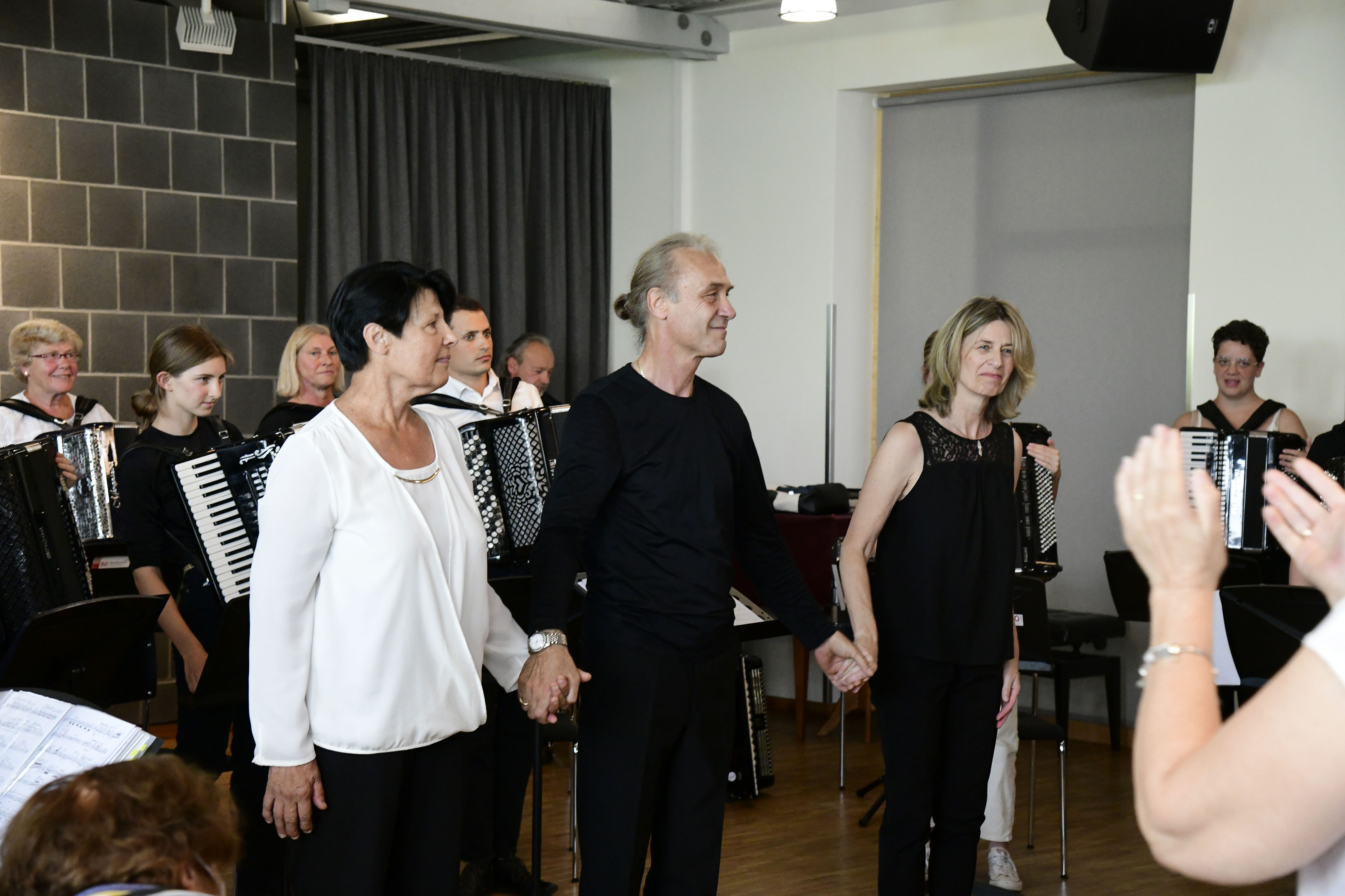 Am Donnerstag, den 18. Mai 2023 war es endlich wieder soweit: nach der Zwangspause durch die Corona Pandemie konnten wir endlich wieder unsere französischen Freunde in Tarare besuchen. Gegen 16.30 Uhr fuhr der Bus in den Bahnof von Tarare ein, wo wir schon sehnsüchtig erwartet wurden. Nach den Begrüßungsreden von Bruno Peylachon (Bürgermeister von Tarare) und Thomas Sprißler (Oberbürgermeister von Herrenberg) gab es in jeder unserer Gastfamilien ein individuelles Programm. Am Freitag nachmittag trafen wir uns vor dem Kloster „Couvent de la Tourette“ in Eveux, welches von dem Architekt Le Corbusier entworfen wurde. Wir bekamen eine Führung durch das Kloster, wo wir nicht nur viele Räume anschauten, sondern auch sahen, wie Le Corbusier Farben und Licht in Szene setzte. Danach gab es einen Zwischenstopp in der Brauerei Prisca in Sain Bel, wo wir uns die Produktionsstätte anschauen und sogar verschiedene „Craft-Biere“ probieren durften. Das Abendessen nahmen wir gemeinsam mit unseren französischen Freunden ein, welches ein Bäcker aus dem Orchester Amplepuis-Tarare in Form eines kalten Buffets zusammenstellte. Frisch gestärkt fand im Anschluss noch unsere einzige Probe statt. Am Samstag trafen wir uns vormittags an dem See „Lac des Sapins“ in Cublize, wo wir gemeinsam im Restaurant „La Guinguette“ zu Mittag aßen. Danach ging es für uns zurück nach Tarare, wo wir im „Caveau“ (Saal unter dem Theater von Tarare) noch die letzten Vorbereitungen für unser Konzert trafen. Dann war es endlich soweit: um 17 Uhr begann das gemeinsame Konzert des Accordéon-Club Amplepuis-Tarare und des Akkordenorchesters Herrenberg. Das Publikum war begeistert – und ließ es sich nicht nehmen bei „Joe Dassin – In Memory“ das eine oder andere Lied mitzusingen. Bei der Zugabe zeigten unsere Dirigenten Marie-Thérèse Berraud, Waltraud Epple-Holom und Viktor Oswald, wie tief wir freundschaftlich verbunden sind: sie dirigierten diese gemeinsam. Anlässlich des 10-jähigen Jubiläums dieser Freundschaft beider Akkordeon Orchester hatte Waltraud Epple-Holom eine Diashow aus diesen 10 Jahren zusammengestellt, welche sie anschließend zur großen Begeisterung aller Gäste und Musiker vorführte. Anschließend spendierten die Partnerschaftskomitees beider Städte ein kaltes Buffet als gemeinsames Abendessen am letzten Abend. Schweren Herzens mussten wir am Sonntag wieder Abschied nehmen und so ging es für uns – wieder im Bus – heimwärts. Umso mehr freuen wir uns darauf, im nächsten Jahr unsere Freunde wieder in Herrenberg begrüßen zu dürfen. Alors, à l’année prochaine – also, bis zum nächsten Jahr!