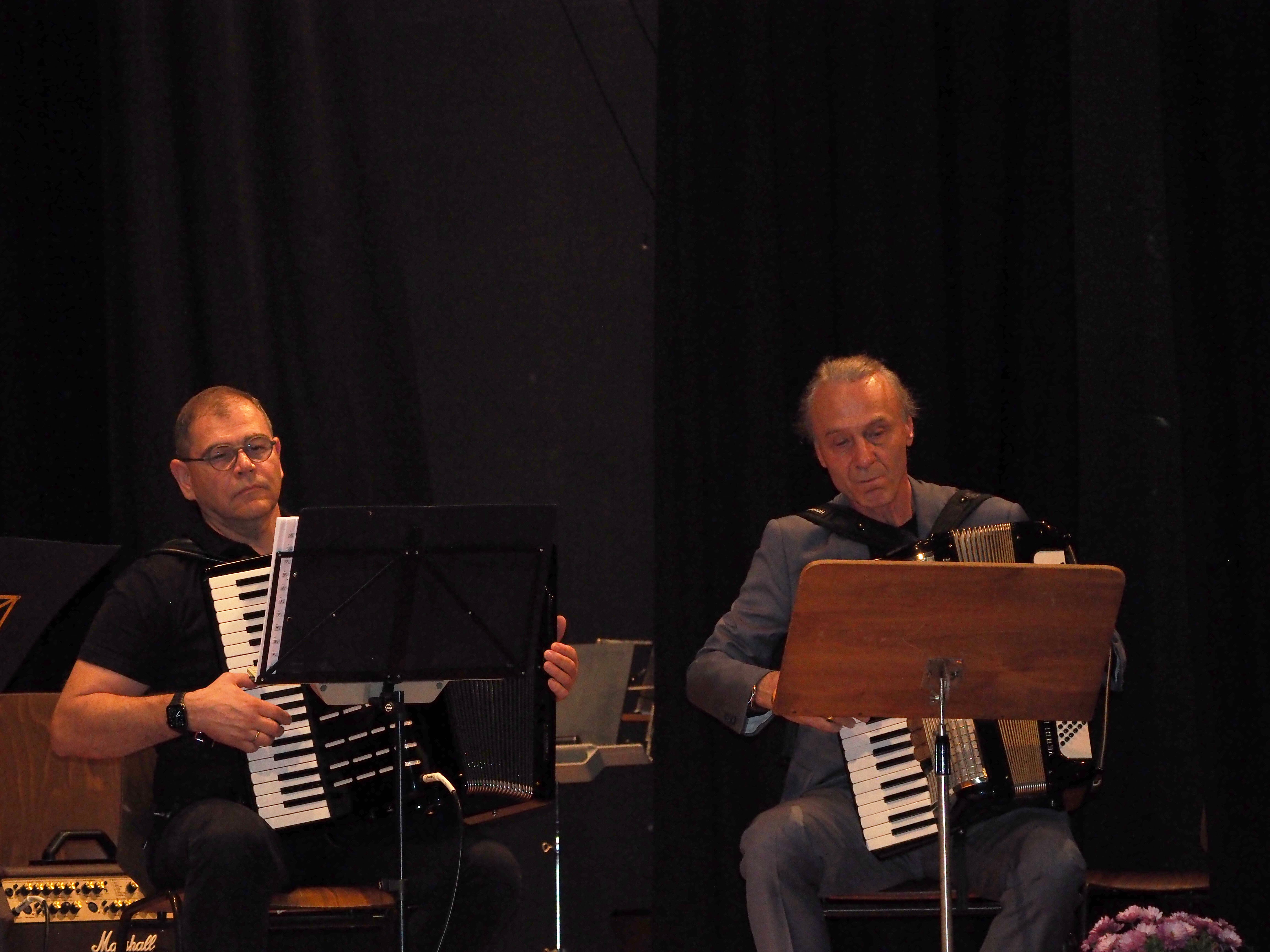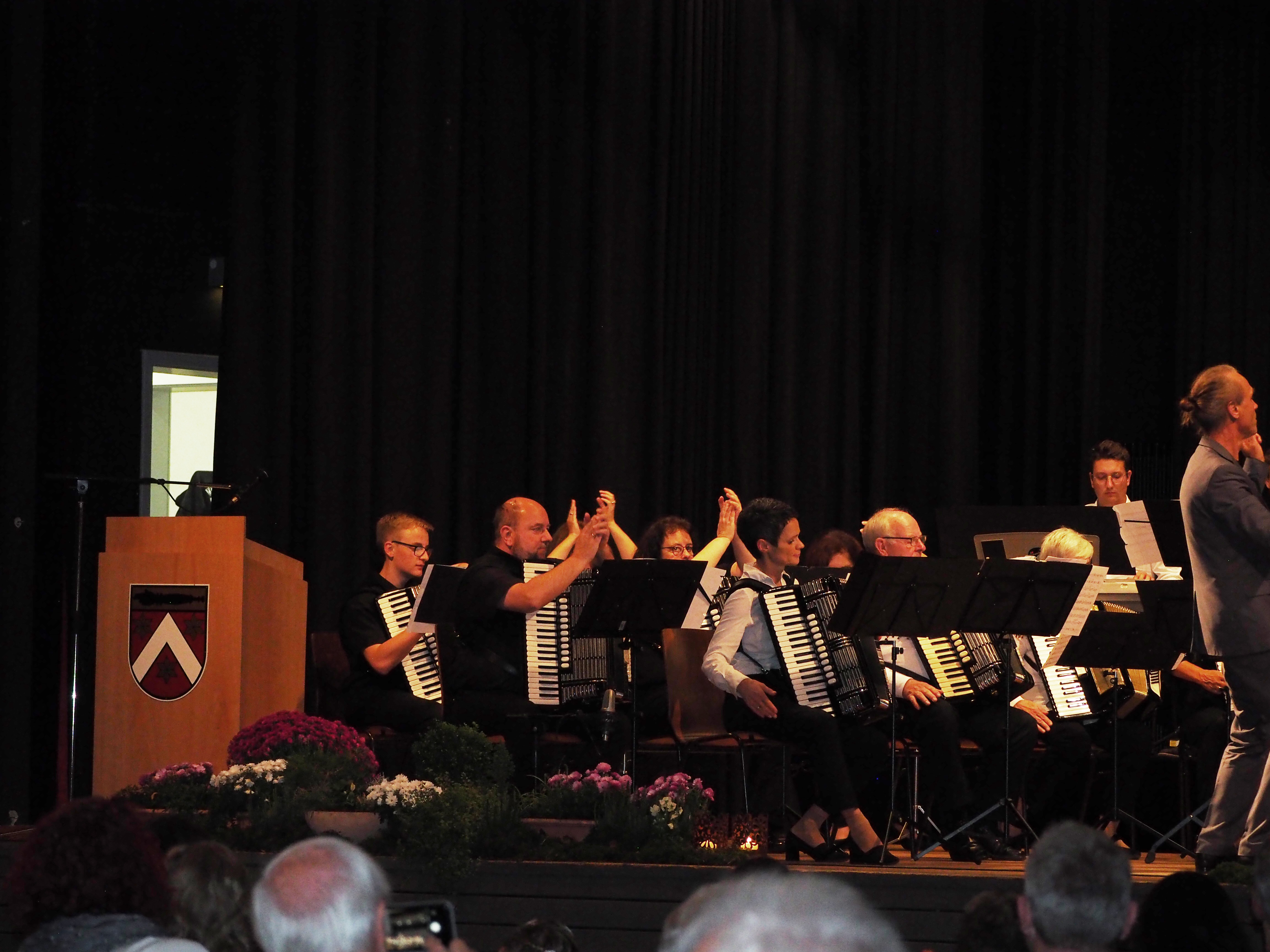 Aufgrund krankheitsbedingter Ausfälle erhielt das Ensemble tatkräftige Unterstützung und präsentierte statt der geplanten vier Stücke zwei Titel. Dirigent Viktor Oswald sorgte in dieser Zeit mit zwei Solostücken von Astor Piazzolla für eine unterhaltsame Einlage.