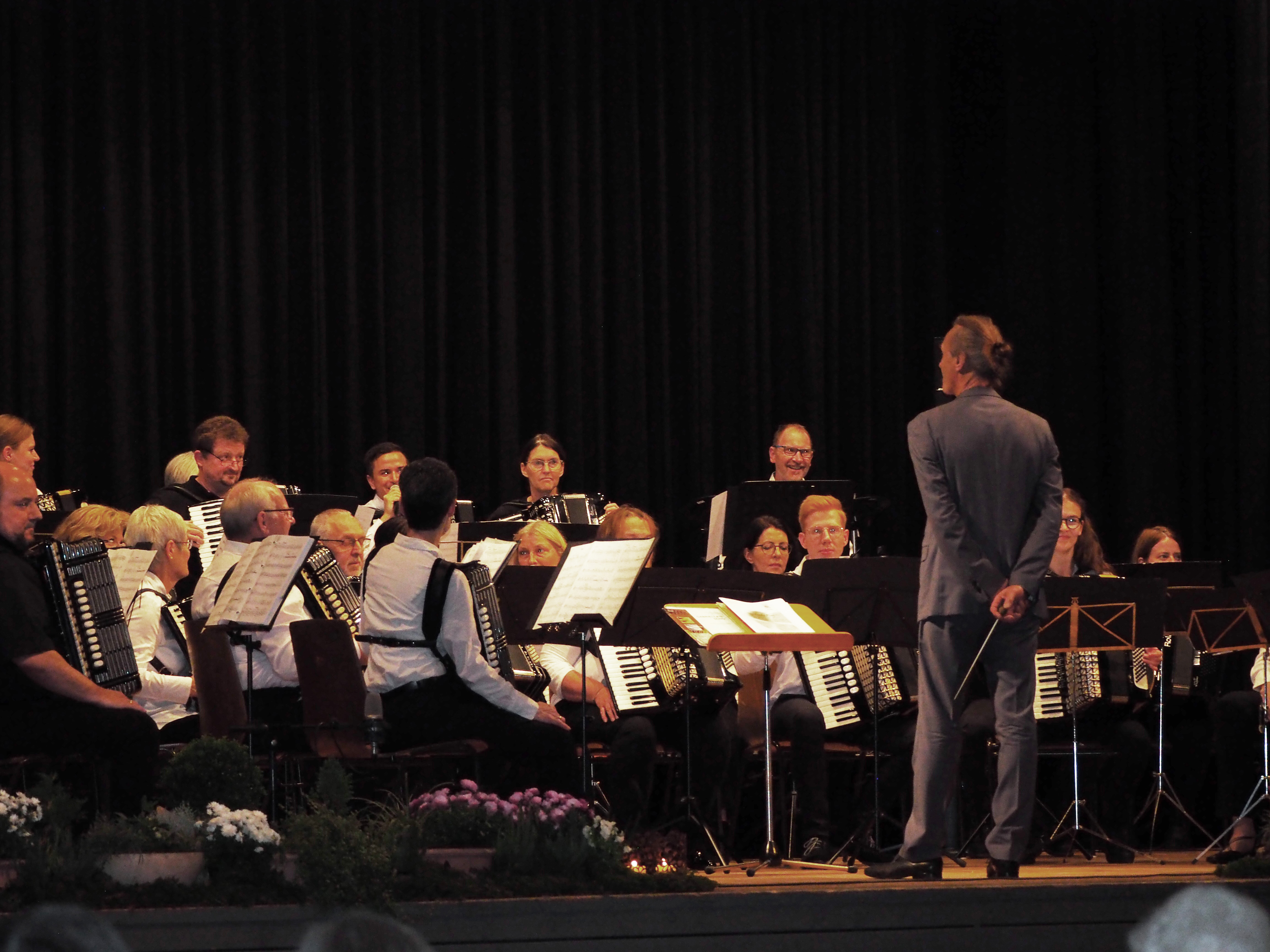 Die Erste Vorsitzende Ingrid Braun hatte die ehrenvolle Aufgabe, zahlreichen aktiven Mitgliedern für ihre langjährige Vereinszugehörigkeit zu danken. Mit Urkunden und Geschenken wurden sie geehrt. Besonders hervorgehoben wurde Roland Weisser für seine beeindruckenden 60 Jahre aktive Mitgliedschaft, für die er die DHV Ehrennadel in Gold vom deutschen Harmonikaverband erhielt. Auch Ingrid Braun selbst wurde mit dieser Ehrennadel ausgezeichnet. Sie war 15 Jahre im Akkordeonorchester Ammerbuch aktiv, bevor sie vor 45 Jahren nach Remminsheim zog.
