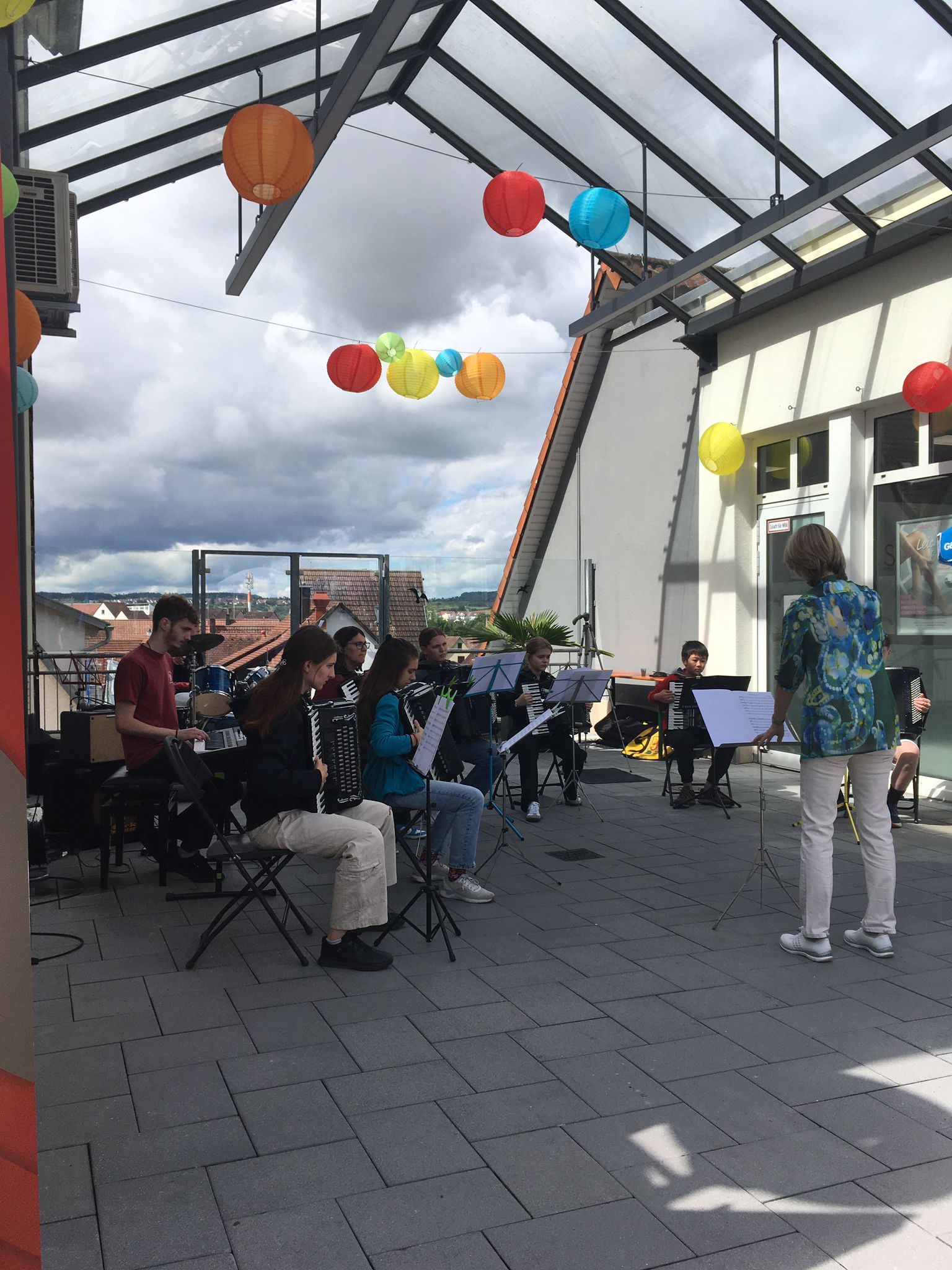 Wie jedes Jahr waren wir auch mit unserem Jugendorcherster dabei, da es überwiegend aus Schülern der Musikschule Herrenberg besteht. Unterrichtet werden wir von Waltraud Epple-Holom, sie leitet zugleich auch unser Jugendorchester des AOH. So musizierte also unsere Jugend im Anschluss an das „Ensemble Kunterbunt“ um 11 Uhr am Nufringer Tor. Nach drei Musikstücken („Vangelis – Conquest of Paradies“, „Jackson/Richie – We are the World“ sowie „Traditional – Bella Ciao“) wurden wir vom Ensemble „Tango & More“ abgelöst. Es machte uns allen wie immer großen Spaß!