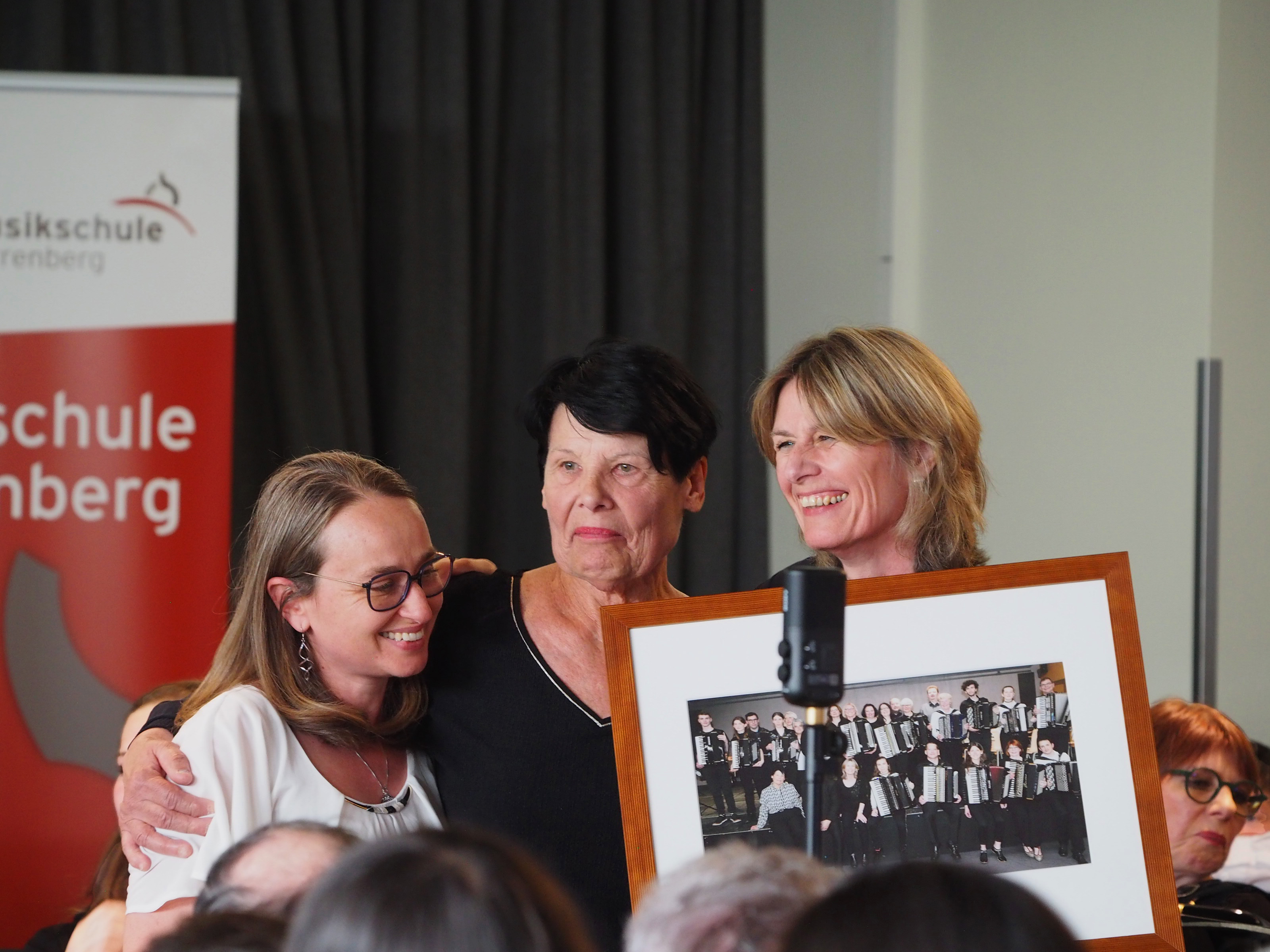 Je länger wir uns kennen, umso schwerer fällt er uns: der Abschied, wenn unsere Freunde wieder nach Tarare zurückfahren. Aber es half nichts – am Sonntagvormittag mussten die Akkordeons im Bus verstaut werden und es wurden die letzten Gruppenfotos geschossen, bevor unsere Freunde in den Bus einstiegen. Um 11:30 Uhr fuhr er unter großem Abschiedwinken schließlich ab. Zu guter Letzt möchten wir uns noch ganz besonders bei Waltraud Epple-Holom (sie wird von unseren französischen Freunden und mittlerweile auch von uns Valerie genannt) für die sehr zeitaufwändige, dafür aber großartige Organisation des Austausches bedanken (sie macht das für uns bereits seit 11 Jahren!) und natürlich auch fürs Dirigieren. Ebenfalls fürs Dirigieren und Proben richten wir ein großes Dankeschön an Marie-Thérèse Berraud (Accordéon Club Amplepluis-Tarare) und Viktor Oswald. Weiterhin bedanken wir uns bei der Musikschule Herrenberg für das Überlassen des Studios für die Proben und das Konzert, bei Jochen Haab, der unser Publikum durch das Programm führte sowie bei Lauryn Channeliere und Lila Moreau für ihre Übersetzungen ins Französische. Und zu guter Letzt bei Etienne Chatelet, der sich zur Zeit in Irland aufhält und es sich nicht nehmen ließ, für den Austausch nach Stuttgart zu fliegen. Das zeigt, wie tief diese deutsch-französiche Freundschaft ist!